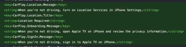 La bêta laisse en effet entrevoir des bribes de code dans lequel une mention à l’intégration d’Apple TV dans CarPlay est faite. “Quand vous ne conduisez pas, connectez-vous à Apple TV avec votre iPhone”, est ainsi écrit dans le code d’iOS 26.4.